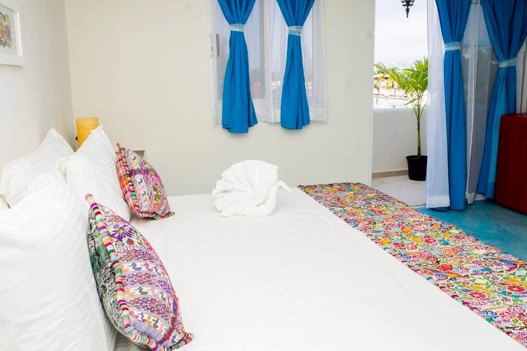 Yucatan is one of six uniquely designed rooms at the property. Located on the third floor, this comfortable and spacious room features a private balcony overlooking Avenida Hidalgo, the island’s main pedestrian street. The white walls are decorated with colorful hammocks, a traditional craft famously made in the state of Yucatan, giving the room a distinctive character.